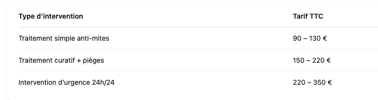 Traitement contre les parasites alimentaires, mites textiles, blattes, fourmis ou acariens